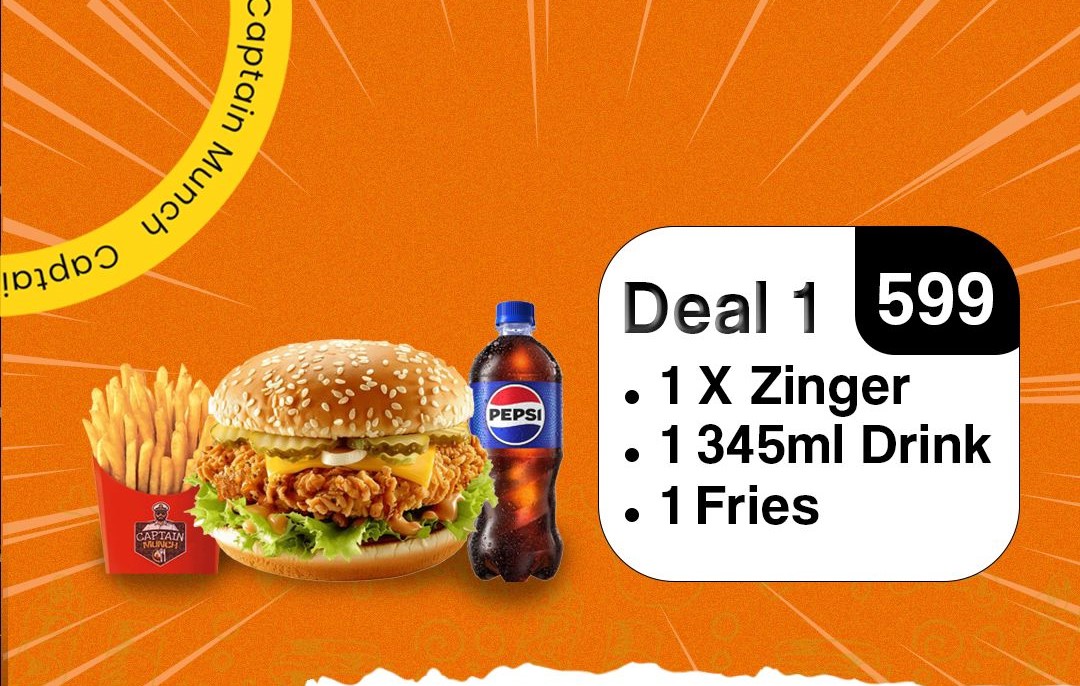 Captain Munch in Wah Cantt is a vibrant destination for food lovers who crave bold flavors and a modern dining experience. Known for its diverse menu, Captain Munch offers a delicious range of burgers, pizzas, platters, fries, and signature fast-food creations made with fresh ingredients and rich taste.